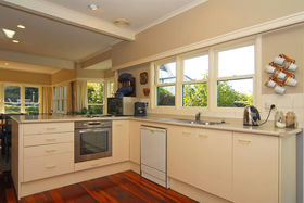 An east-facing kitchen/dining room/family room, also with external access through 2 separate sets of French doors, offers ample bench space, plenty of storage and comes complete with a monstrous built-in native timber kitchen dresser ... an entertaining family would be in their element!