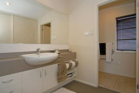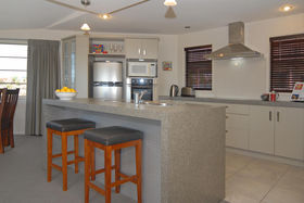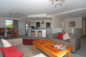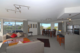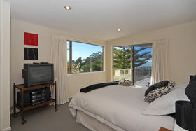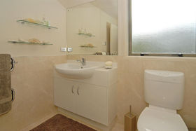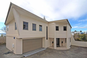 Thoughtfully designed with 4 bdrms (2 up and 2 down) and 3 bathrooms and an open plan living area that spills out to a wide deck sheltered from the sun and weather. Enjoying northern sea views across a peaceful treed valley and sited on an easy care private freehold section.