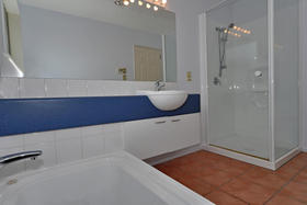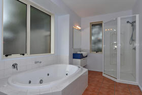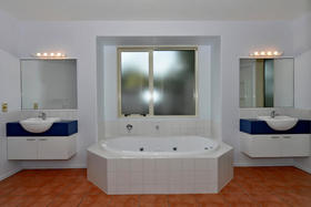 The master bedroom is at the rear of the property ,there's twin walk in robes,his and hers vanity units plus a spa bath.