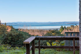 The two bedroom brick home with a large open plan lounge and dining area was built in the 1980s on its commanding 3212 sq m site.Stay warm through the cold winter nights snuggled up to the closed wood fire and when summer comes you can relax in the conservatory and admire your view.