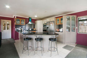 The five bedroom - or 4 and a study- home is an entertainer's delight with a separate living area, functional open plan kitchen dining and family room which open to a sun-drenched patio.