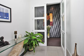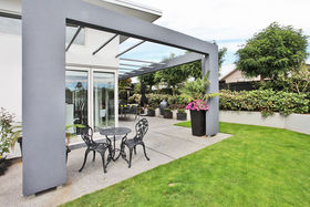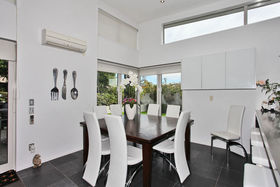 The designer kitchen with stainless steel counter tops and breakfast bar, has gas top cooking, integrated refrigerator/freezer, two dish drawers and loads of storage. The open plan living/dining spaces (including a study nook) are light and airy with high ceilings and clerestory windows, giving that sense of space. From here step out into the beautifully structured courtyards and lawn areas (including a discreetly placed raised vegetable plot). An array of most interesting plants and shrubs are enclosed by garden walls for shelter and privacy, entertain outdoors with ease or just relax and enjoy your surroundings.