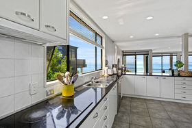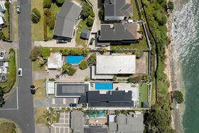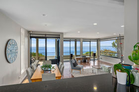 The home as it is offers an ideal layout for families with expansive living spaces, excellent accommodation and four-car garaging. The main living is on the first floor and benefits from breath-taking panoramic ocean views from the kitchen, lounge and dining space which is open plan. This flows directly onto wide North facing decks spanning the width of the upper level. There is a master bedroom on this floor with an ensuite and walk-in wardrobe, and this also offers fantastic views.