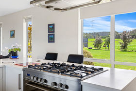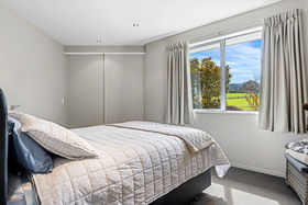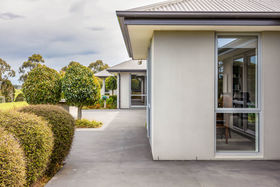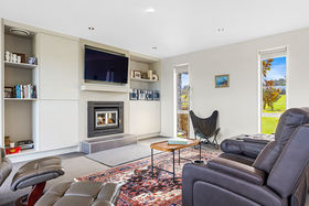 Accessed by a chip-sealed driveway, the 370sqm residence is positioned for light and outlook, its rendered brick construction and high ceilings delivering both permanence and presence.