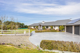 Elevated above the plains in Ashley Downs, this four-hectare lifestyle property captures sweeping views across Christchurch, the plains, and Pegasus Bay, balancing privacy with a far-reaching perspective.
